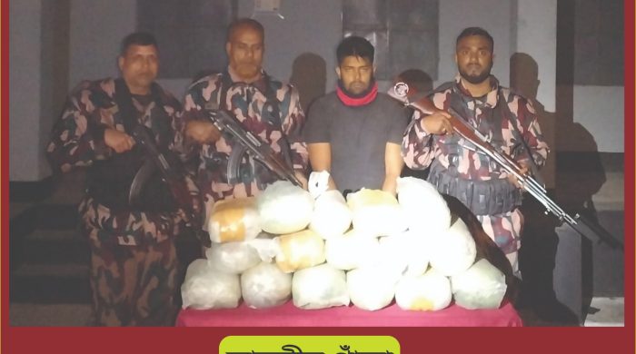 গত ২৪ ডিসেম্বর ২০২৫ তারিখ ২৩০০ ঘটিকায় যশোর ব্যাটালিয়ন (৪৯ বিজিবি) এর ঘিবা বিওপির নিয়মিত টহলদল সীমান্তে টহলরত অবস্থায় ২নং ঘিবা গ্রামের কাঁচা রাস্তার মধ্যে দিয়ে একজন ব্যক্তি মাথায়